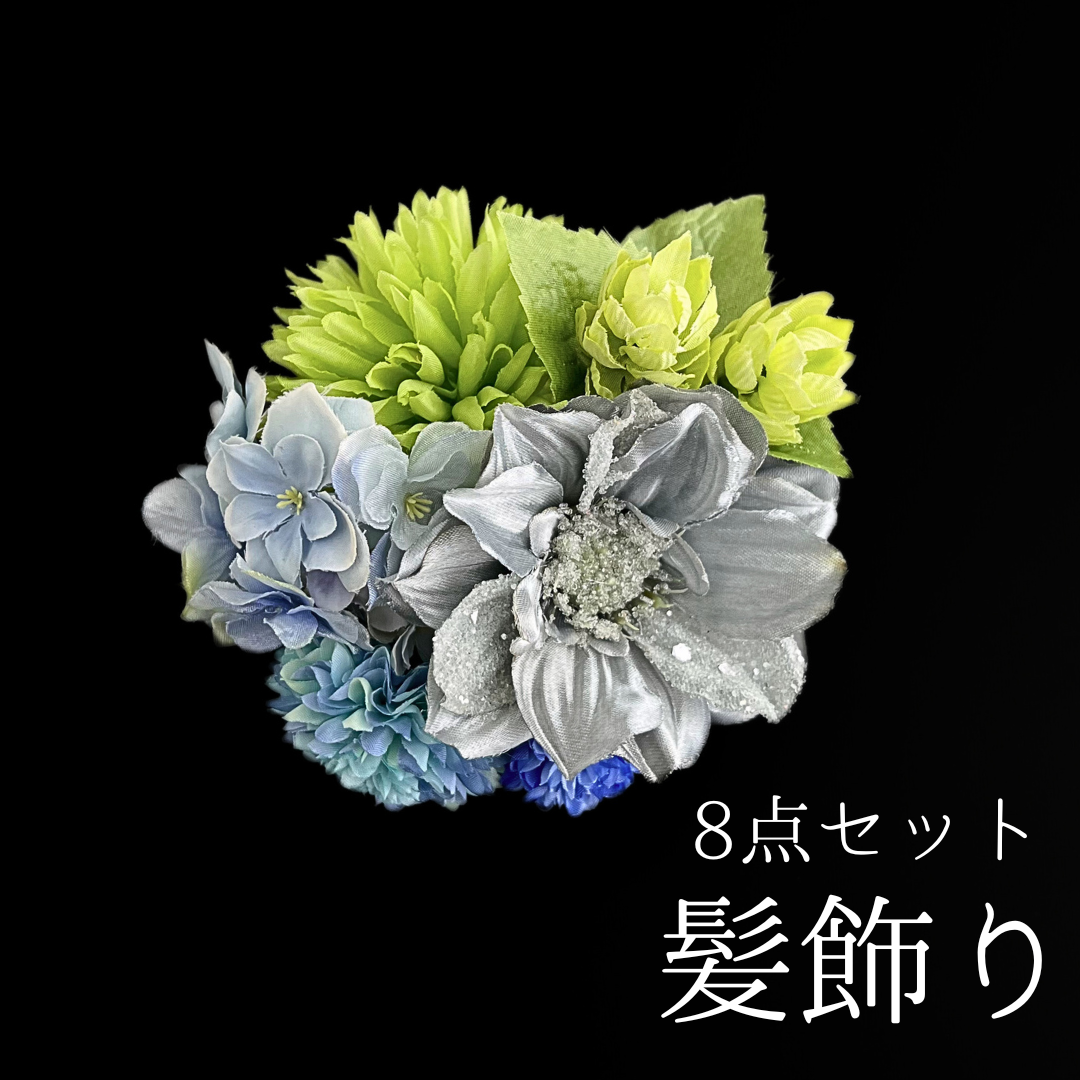 シルバーのお花がキラキラ輝き、クールで大人の雰囲気の髪飾りです。