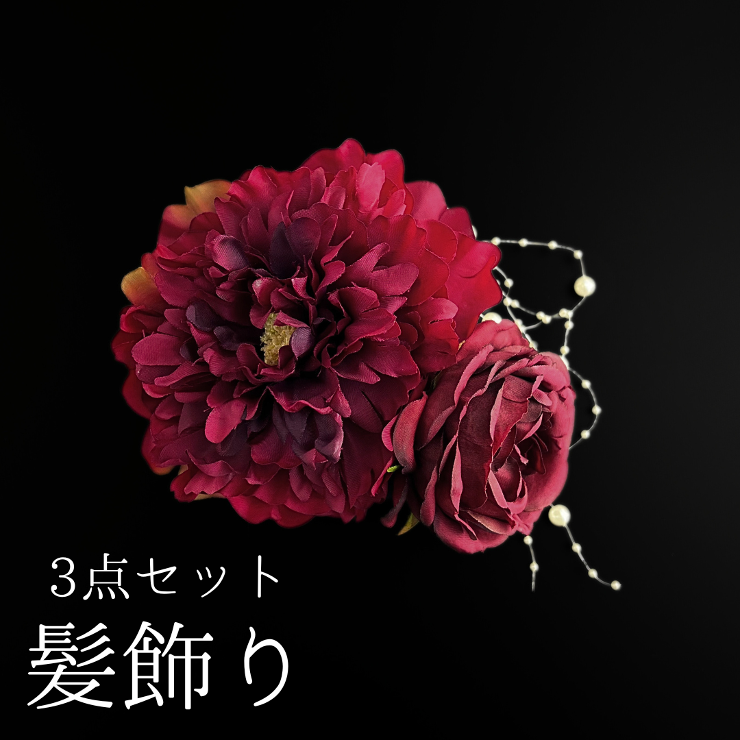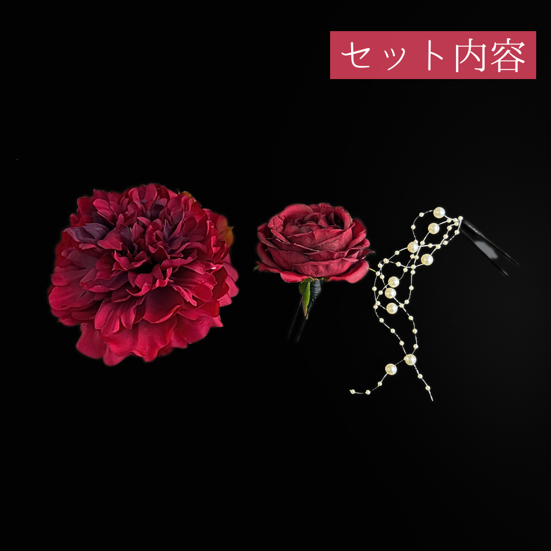 こっくりとした赤色のお花が素敵な髪飾りです。