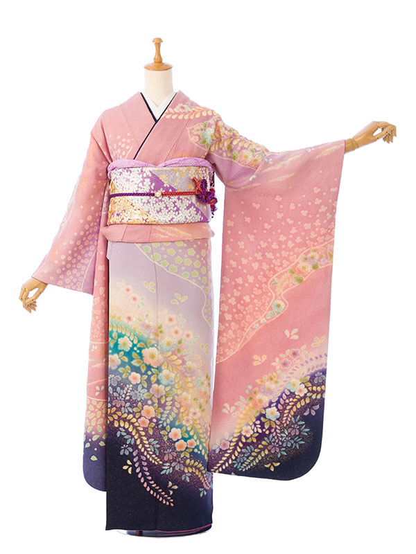 振袖|ピンク系|辻が花|5S107|対応身長:160-170cm|サイズ:7号-13号