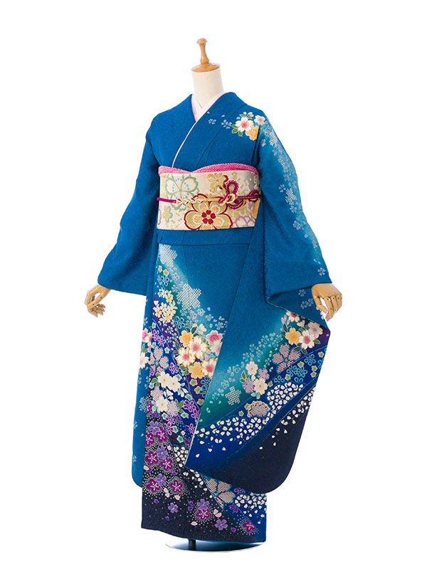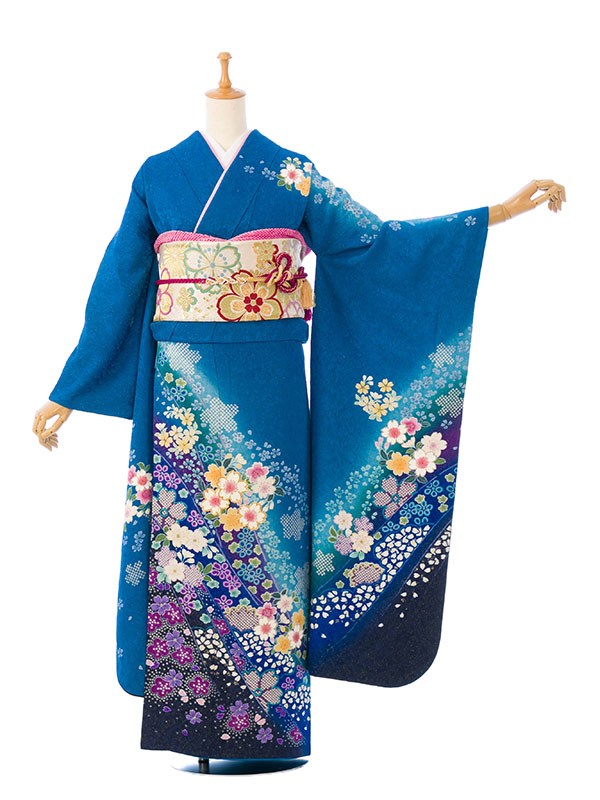 振袖|青系|桜|4S950|対応身長:158-170cm|サイズ:7号-13号